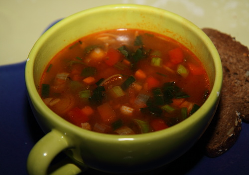 Yumm, a big bowl with a slice of bread – - this actually is a full meal! (or a lunch if you take a small bowl)